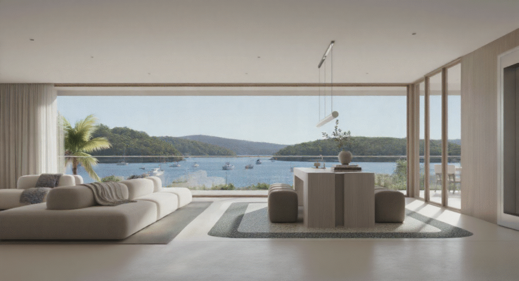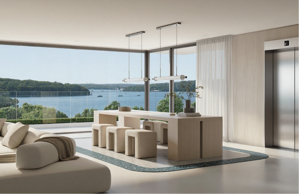 Set across 1,400+ square metres with panoramic views over the waterfront and reserve, Cascade is a home designed to move with the land, stepping down in tiers to mirror the natural slope and capture every angle of the view.
