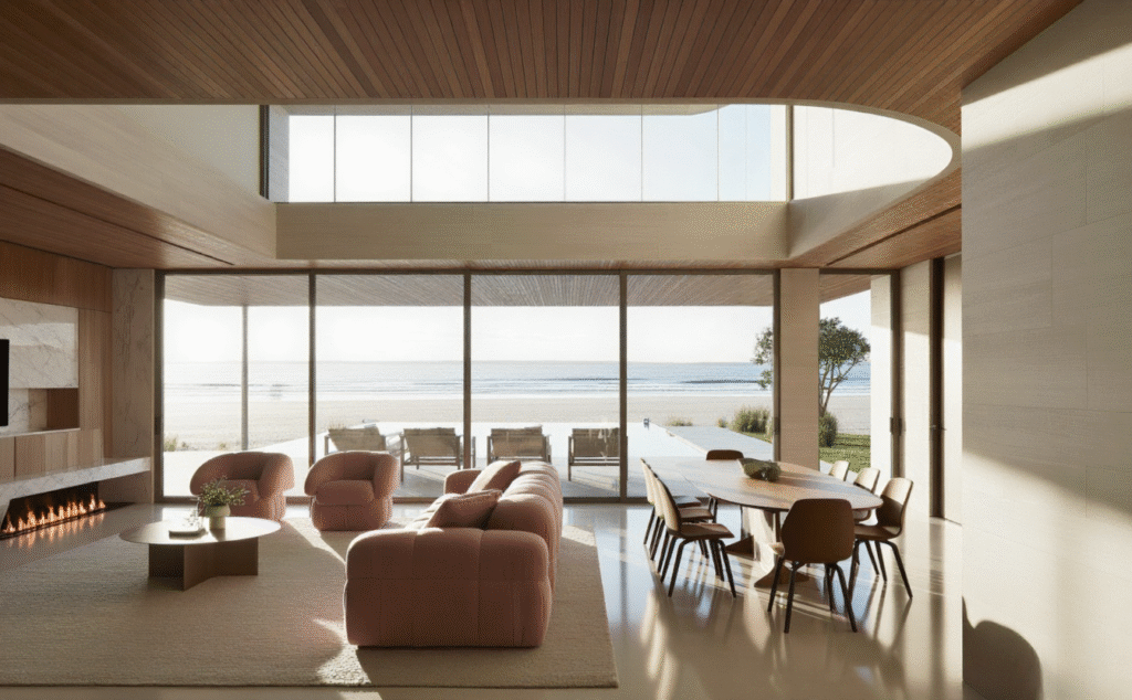 Experience uninterrupted beachfront living in this architecturally designed coastal home featuring open spaces, expansive glazing and refined materials inspired by the serene water..